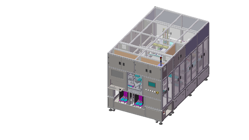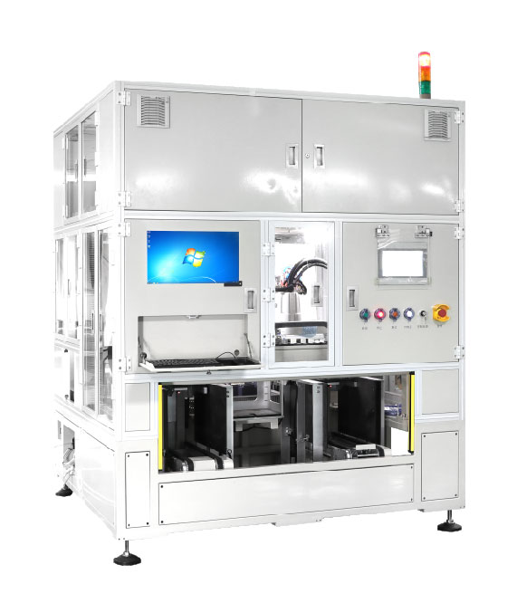 一種測試電池IV、開路電壓、內阻、溫度、條碼掃描、極耳整形功能及電池自動輸出的全自動化測試設備,采用四軸機器人+CCD定位技術+伺服+電池測試儀等方式,實現(xiàn)換型時間短、維護方便、操作簡單。