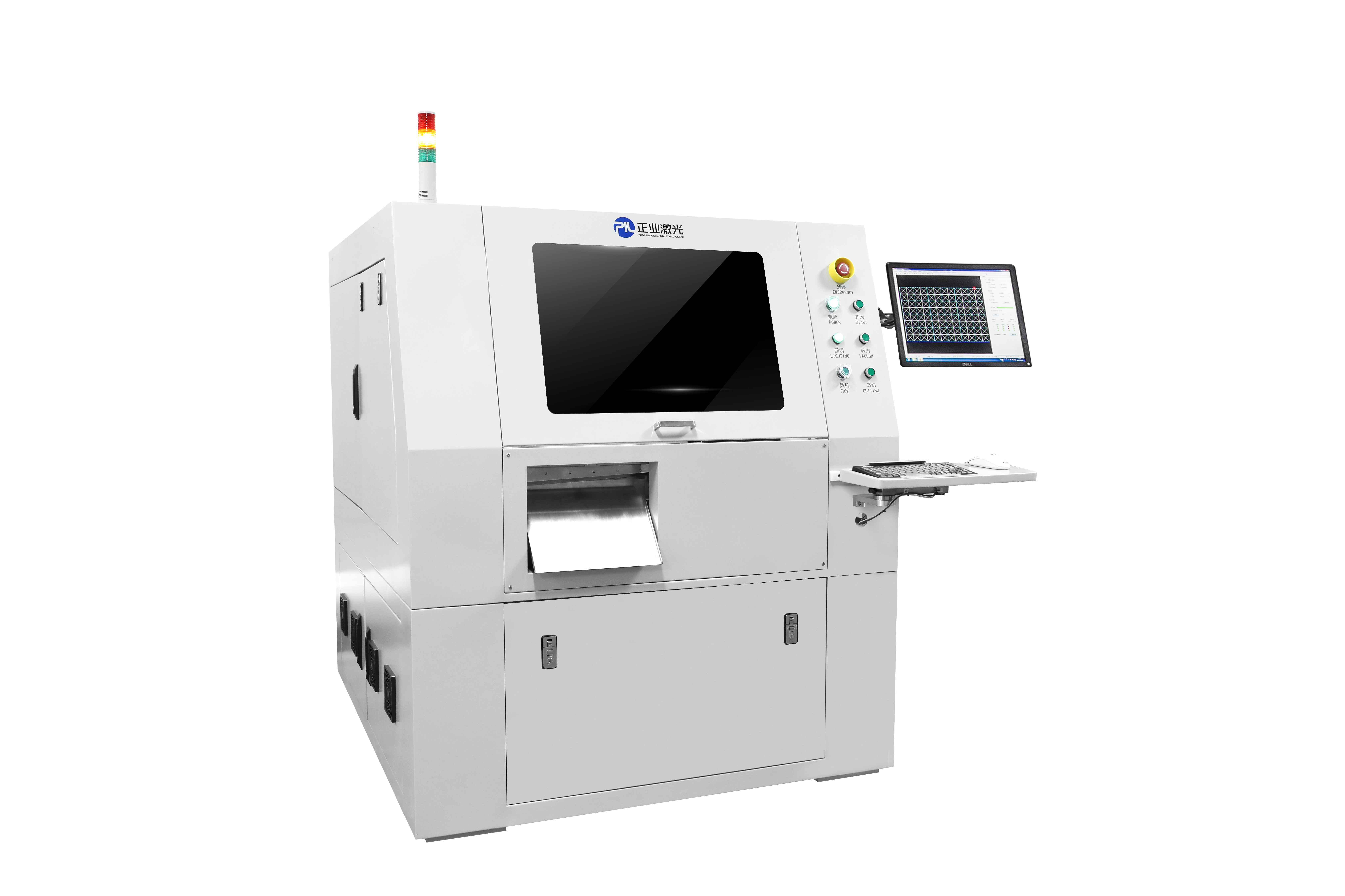 適用于覆蓋膜開窗把卷料覆蓋膜通過激光加工后裁切成單張只需把資料輸入電腦,全自動完成所有動作無需人工干預,可節省人力成本